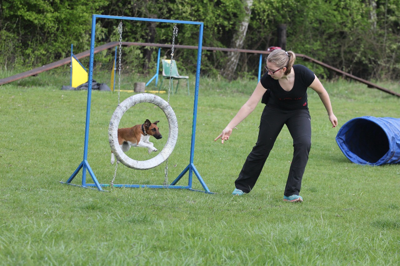 Kruh je vlastně něco jako složitější hop. Pes proskočí kruhem zavěšeným za řetízky.
